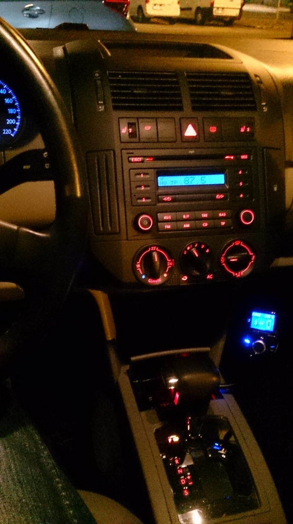 Så till slut så bytte jag till en multimediadosa (Yatour DMC) som kopplats till bilstereons CD-växlarport. Jag monterade dosan så att den sitter bakom stereon (syns inte inne i kupén) och så att en kabel med 3.5mm jack är diskret dragen till bilens askkopp (antingen pluggar jag in mobilen direkt eller kör via en enkel liten bluetoothspelare). Nu slipper jag störningarna och upplever bättre ljudkvalitet än med FM-sändaren: